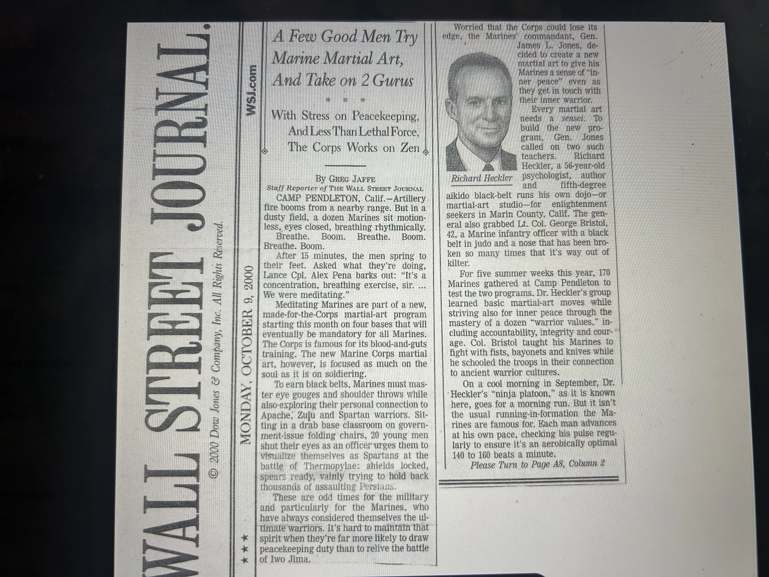An article from the Wall Street Journal below showcases Richard Sensei’s groundbreaking work in 2000 with the Marine Corps Martial Arts Program.